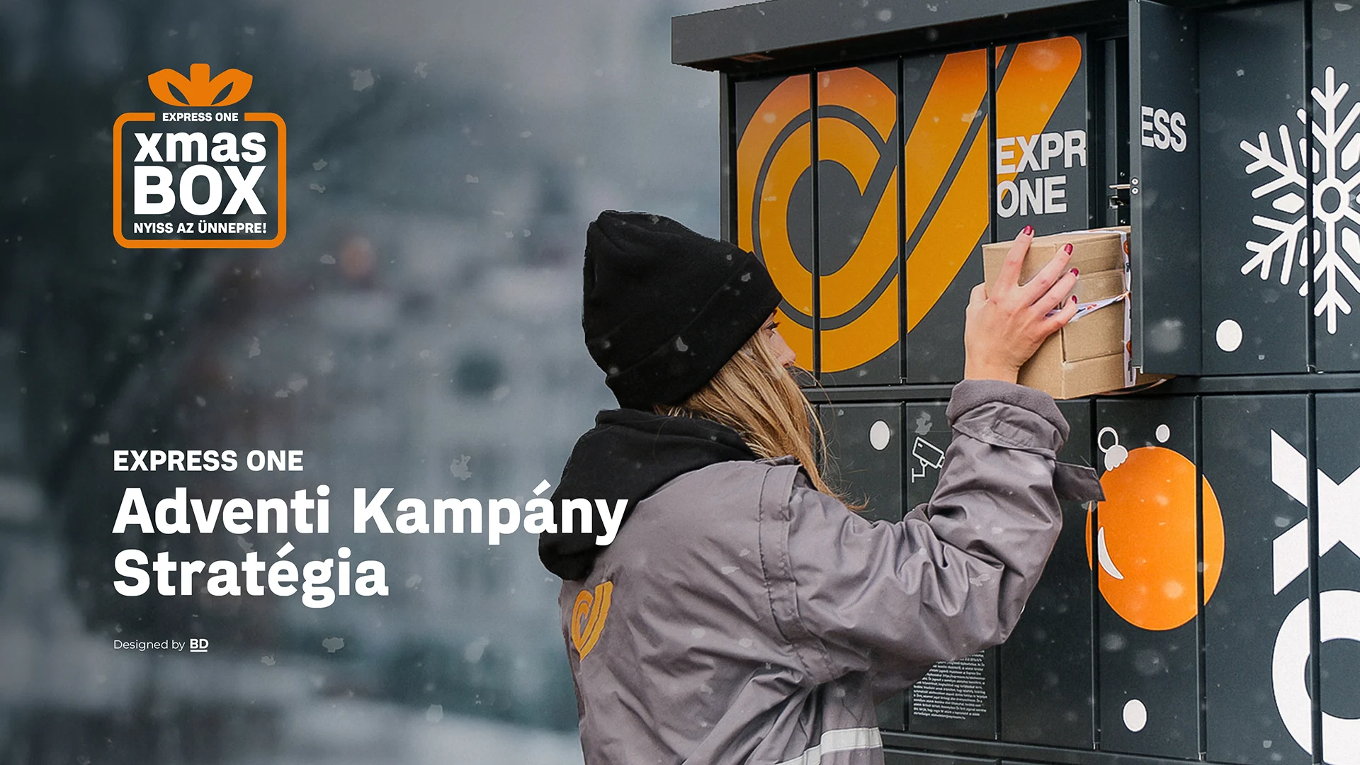 Az Express One megbízásából az automatás csomagátvételi szolgáltatás funkcionális folyamatának érzelmi alapú márkaépítése és ügyfélélmény-fejlesztése valósult meg Express One Adventi kampány néven. A feladat nem csupán egy szezonális promóció lebonyolítása volt, hanem egy statikus szolgáltatási pont – csomagautomata – dinamikus közösségi érintkezési ponttá alakítása: egy új vizuális nyelv és interaktív kommunikációs irány kialakítása, amely egyszerre erősíti az Express One megbízható piaci jelenlétét, ugyanakkor markánsan megkülönbözteti a márkát a logisztikai szektor versenykörnyezetében.